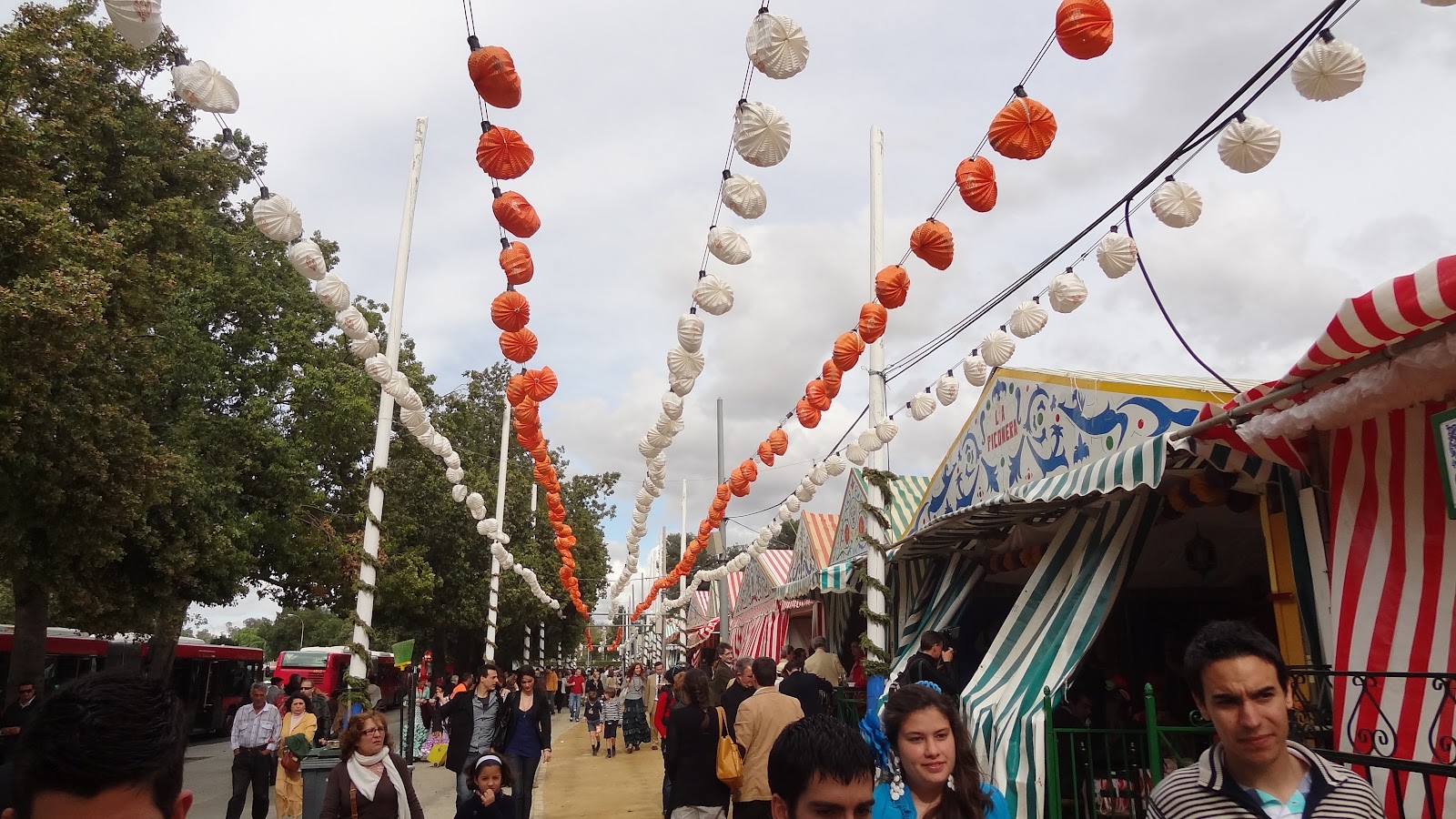 Finally this past week I took another trip. Indigo and I decided that the weather in San Lorenzo was just not cutting it for us, the rain that never came this winter has been hanging out for a month now (a huge factor in my lack of motivation), so we booked a trip to Southern Spain. Some beach time was vital to our health and my sanity.Indigo's friend Emily joined us on the trip and three of us rented a car and set out Saturday morning for Cadiz. The drive from Madrid to Cadiz is close to 8 hrs, for this reason we decided it would be best to stop for the day in Sevilla. Saturday in Sevilla was the Feria de abril, a celebration of the flamenco culture that originated in Sevilla. The streets were full of women wearing flamenco dresses and children dressed as bull fighters and dancers.